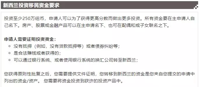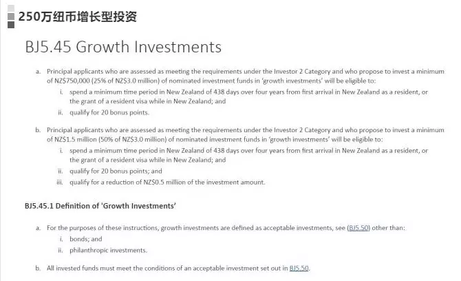 从表格可以看到,二类投资移民,用投资标的来划分了两个投资额度,如果是选择新西兰国债+QDII的方式,那么需要将300万纽币投资该国债QD超过4年;如果投资组合中至少有150万纽币是选择房产或风险投资,那么可以把300万的总投资额度降低到250万。