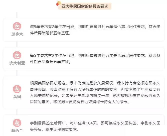 不要小看移民监的约束,这是很多华人在获得绿卡后,由于事业、生活重心仍在国内,最终选择放弃绿卡的原因,不要让移民监变成白折腾的缘由!